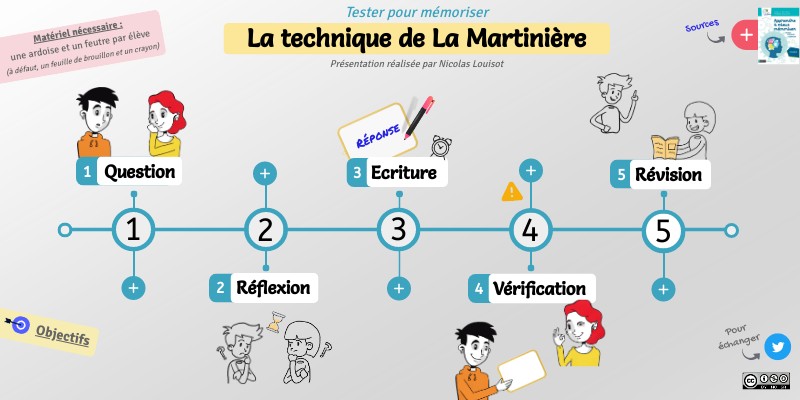Ce Genially présente la technique de La Martinière. Ce procédé de classe favorisant la mémorisation des élèves est proposée dans plusieurs ouvrages sur les sciences cognitives.