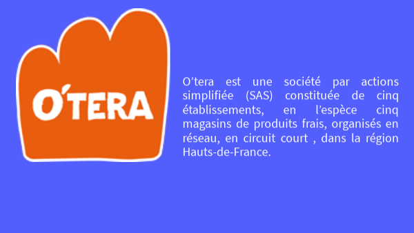 O’tera est une société par actions simplifiée (SAS) constituée de cinq établissements, en l’espèce cinq magasins de produits frais, organisés en réseau, en circuit court , dans la région Hauts-de-France.