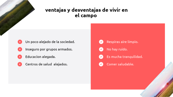 Respiras aire limpio. No hay ruido. Es mucha tranquilidad. Comer saludable.