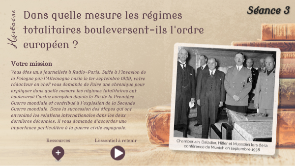 Vous êtes un.e journaliste à Radio-Paris. Suite à l’invasion de la Pologne par l’Allemagne nazie le 1er septembre 1939, votre rédacteur en chef vous demande de faire une chronique pour expliquer dans quelle mesure les régimes totalitaires ont bouleversé l’ordre européen depuis la fin de la Première Guerre mondiale et contribué à l’explosion de la Seconde Guerre mondiale. Dans la succession des étapes qui ont envenimé les relations internationales dans les deux dernières décennies, il vous demande d’accorder une importance particulière à la guerre civile espagnole.