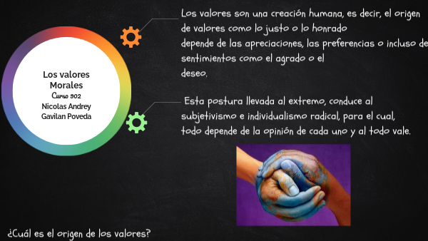 Los valores son una creación humana, es decir, el origen de valores como lo justo o lo honrado depende de las apreciaciones, las preferencias o incluso de sentimientos como el agrado o el deseo.