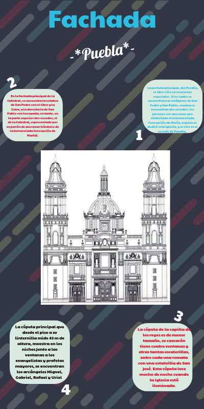 En esta pequeña infografía podremos saber algunos dato curiosos de la fachada de la catedral de la bellisima Puebla.