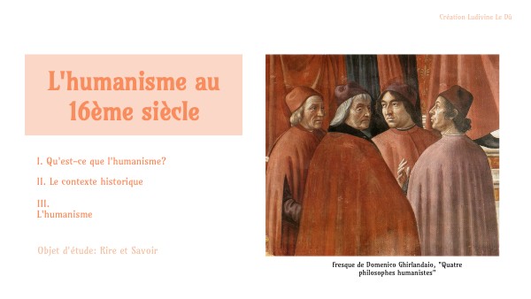 Découvrir l'essentiel de l'humanisme et son contexte pour une classe de 1ère, dans le cadre de l'étude de Montaigne.