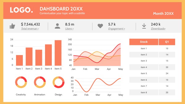 Spice up your reports with this free template packed with graphs, tables, and key metrics. Dive into KPIs like a pro, with full customization freedom.