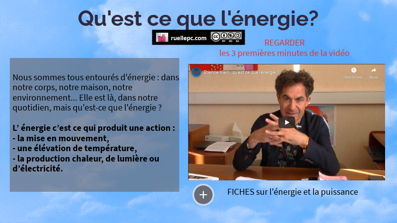 Nous sommes tous entourés d'énergie : dans notre corps, notre maison, notre environnement... Elle est là, dans notre quotidien, mais qu'est-ce que l'énergie ?L’ énergie c’est ce qui produit une action :- la mise en mouvement,- une élévation de température,- la production chaleur, de lumière ou d’électricité.
