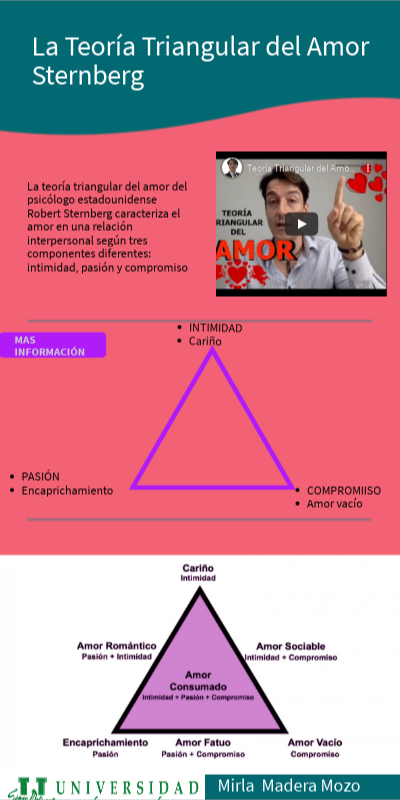 La teoría triangular del amor del psicólogo estadounidense Robert Sternberg caracteriza el amor en una relación interpersonal según tres componentes diferentes: intimidad, pasión y compromiso