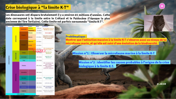 Problématique : Montrer que l'extinction massive à la limite K-T s'observe aussi au niveau de la microfaune marin, et qu'elle est suivi d'une évolution de la biodiversité.