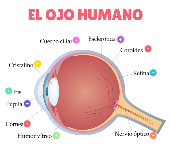 Anatomía del ojo atractivo para niños de primaria. Explica las partes del ojo de una forma sencilla