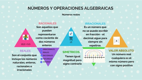 Son el conjunto que incluye los números naturales, enteros, racionales e irracionales