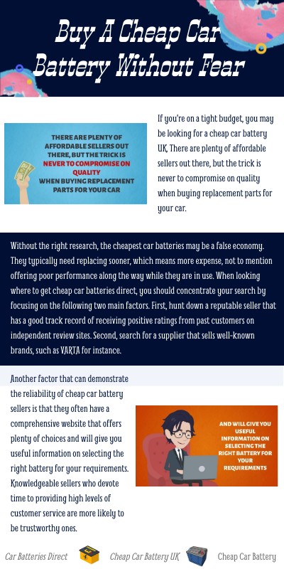 Another factor that can demonstrate the reliability of cheap car battery sellers is that they often have a comprehensive website that offers plenty of choices and will give you useful information on selecting the right battery for your requirements. Knowledgeable sellers who devote time to providing high levels of customer service are more likely to be trustworthy ones.