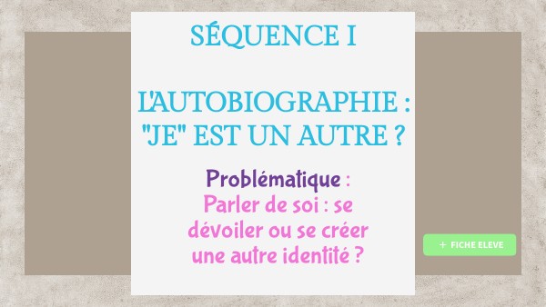 séquence I L'autobiographie : "JE" EST UN AUTRE ?