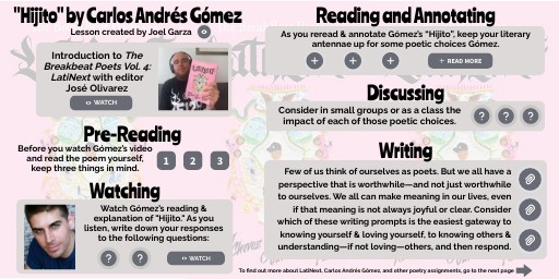 To find out more about LatiNext, Carlos Andrés Gómez, and other poetry assignments, go to the next page