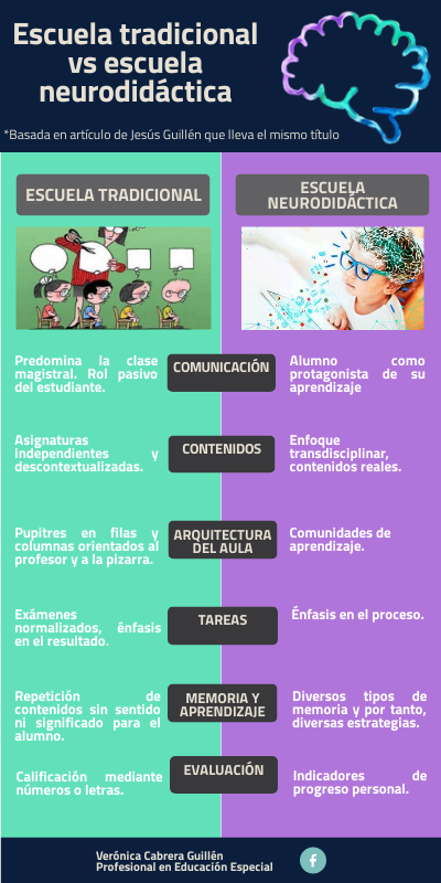 Escuela tradicional vs escuela neurodidáctica
