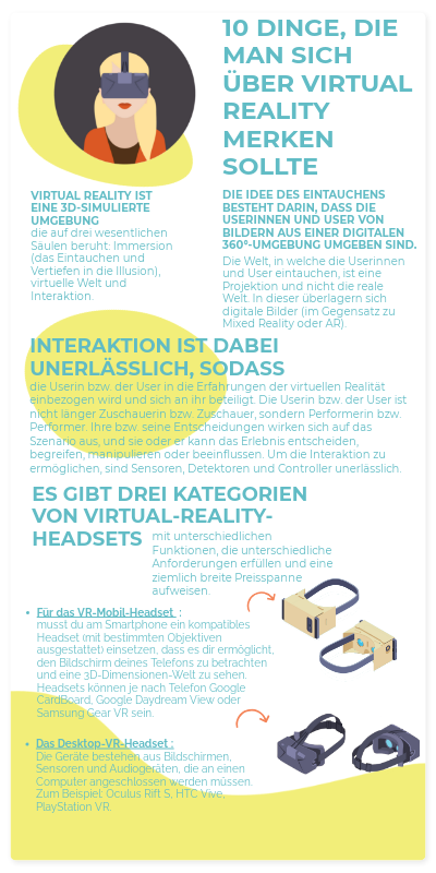 die auf drei wesentlichen Säulen beruht: Immersion (das Eintauchen und Vertiefen in die Illusion), virtuelle Welt und Interaktion.