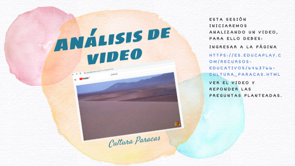 esta sesión iniciaremos analizando un video, para ello debes:ingresar a la página https://es.educaplay.com/recursos-educativos/6463766-cultura_paracas.html ver el video y reponder las preguntas planteadas.