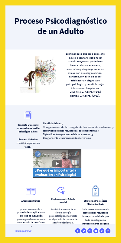 El primer paso que todo psicólogo clínico o sanitario debe hacer cuando acoge a un paciente es llevar a cabo un adecuado, sistemático y dirigido proceso de evaluación psicológica clínico-sanitaria, con el fin de poder establecer un diagnóstico psicopatológico y decidir la mejor intervención terapéutica. Deus Yela, J. (Coord.) y Deví Bastida, J. (Coord.) (2019).