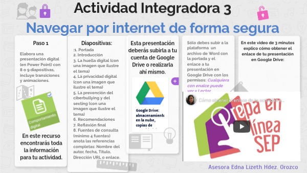 :1. Portada2. Introducción3. La huella digital (con una imagen que ilustre el tema)4. La privacidad digital (con una imagen que ilustre el tema) 5. La prevención del ciberbullying y del sexting (con una imagen que ilustre el tema)6. Recomendaciones7. Reflexión final8. Fuentes de consulta (mínimo 4 fuentes) anota las referencias completas: Nombre del autor, fecha, Título, Dirección URL o enlace.