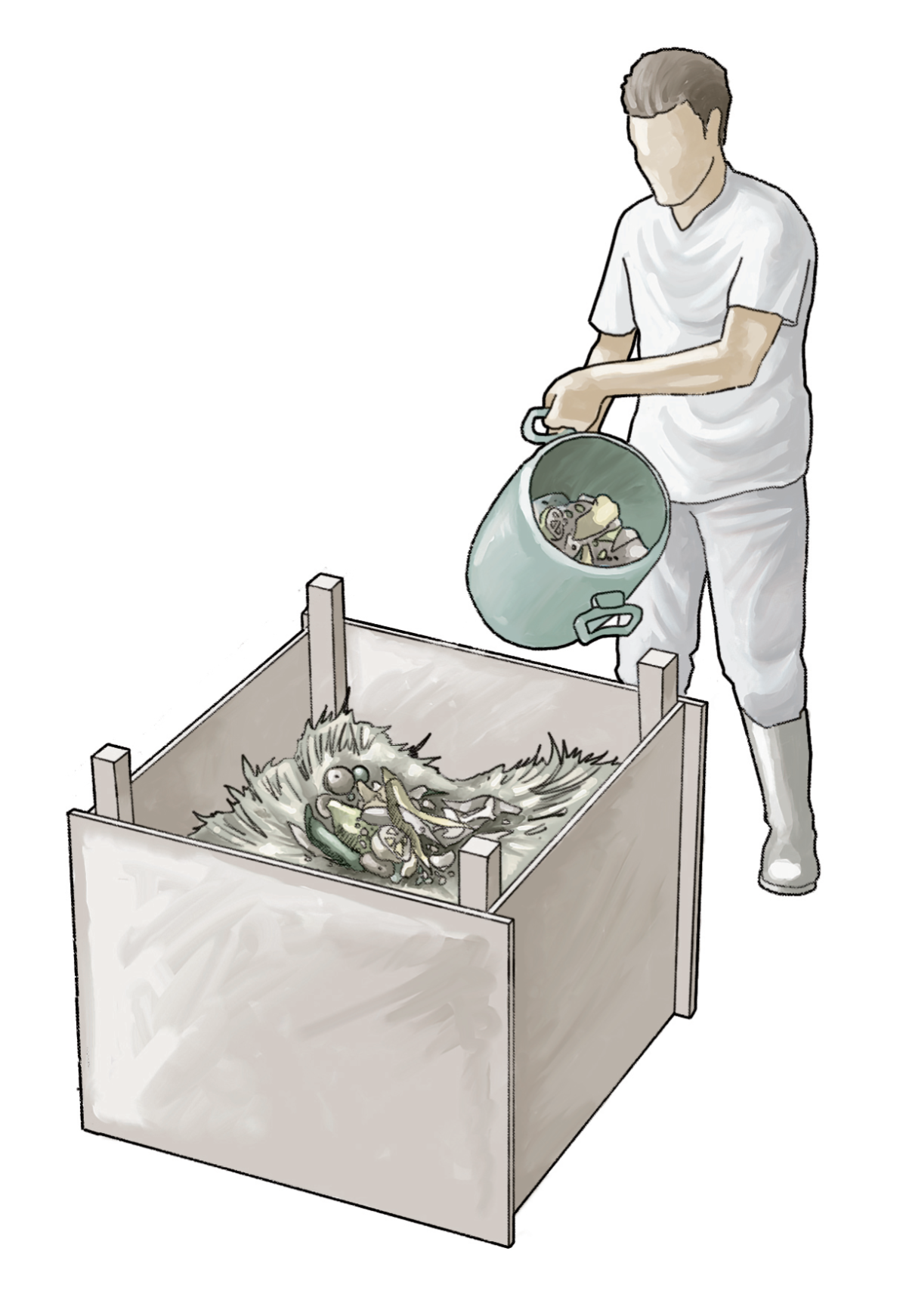 Sobre el nido de hojarasca se vierten entre 10 y 40 kg de desechos orgánicos de todo tipo.