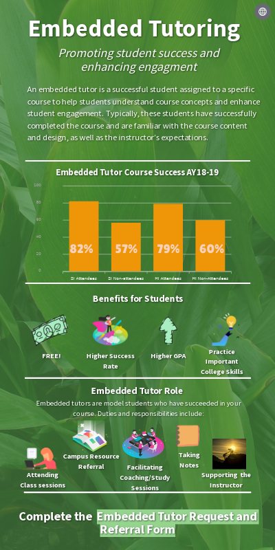 Request for an embedded tutor to support your specific course to promote student success and enhance engagement this spring semester.