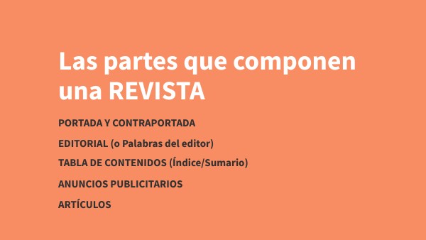 La portada es la pagina principal que se visualiza de una revista.El objetivo de la portada es vender al lector el contenido resumido de las noticias que contiene, despertar el interés del cliente por comprarla para descubrir su interior. La contraportada es la parte posterior o trasera, normalmente el contenido en este espacio lo elige el editor y se dedica a publicidad o temas de impacto e interés para el lector.