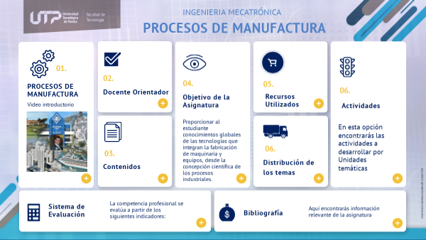 En esta infografía encontrarás todo lo referente a la asignatura Procesos de Manufactura