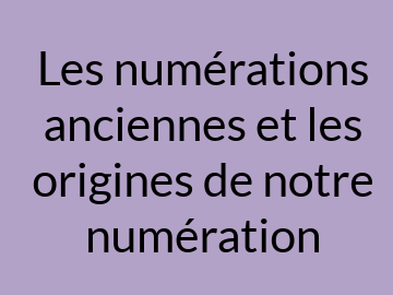 Les numérations anciennes et les origines de notre numération