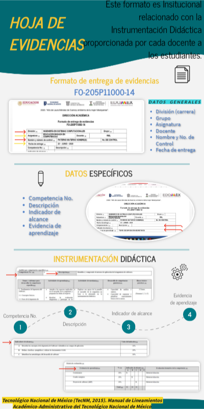 Contiene los datos que necesita para el llenado de un formato de evidencias.