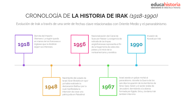 Evolución de Irak a través de una serie de fechas clave relacionadas con Oriente Medio y el panarabinismo.