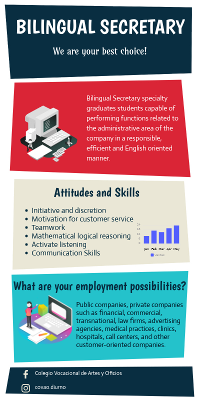 Bilingual Secretary specialty graduates students capable of performing functions related to the administrative area of the company in a responsible, efficient and English oriented manner.