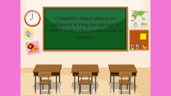 Complète chaque phrase en indiquant le rang occupé par le chiffre 3 dans chacun des nombres suivants.