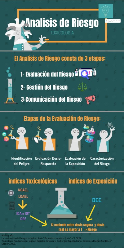 Bibliografía: La evaluación de Riesgos en salud. Serie "De aeribus, aquis et locis" nº3. SESA. Toxicología Fundamental. Manuel Repetto Jiménez y Guillermo Repetto Kuhn. Ediciones Diaz de Santos. 4ª Edición. 2009.
