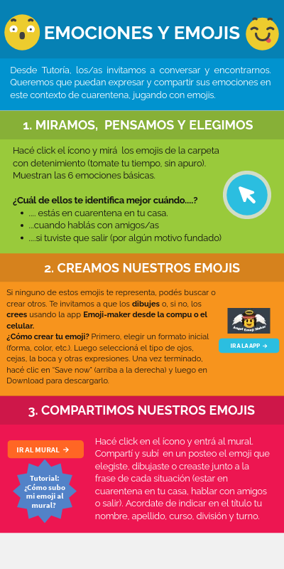 Desde Tutoría, los/as invitamos a conversar y encontrarnos. Queremos que puedan expresar y compartir sus emociones en este contexto de cuarentena, jugando con emojis.