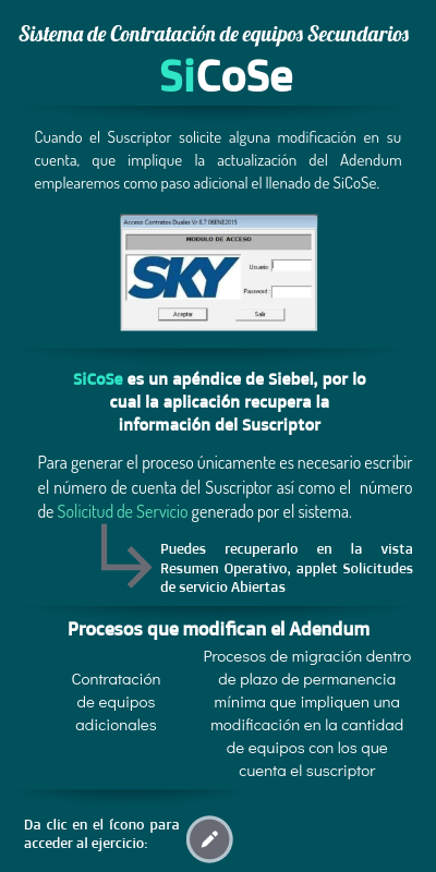 Cuando el Suscriptor solicite alguna modificación en su cuenta, que implique la actualización del Adendum emplearemos como paso adicional el llenado de SiCoSe.