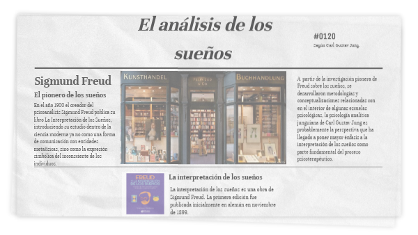 Para el psiquiatra suizo Carl Jung, creador de la psicología analítica, esta fuerza creativa hace uso de las impresiones de la víspera, de los restos diurnos y de nuestras experiencia vitales para construir las imágenes y las historias de nuestros sueños.
