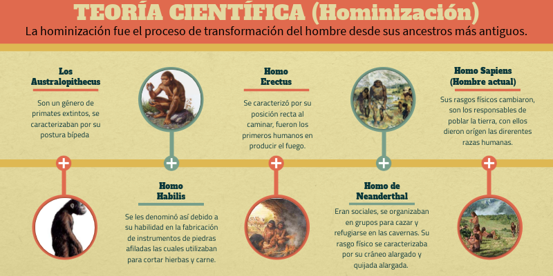 La hominización fue el proceso de transformación del hombre desde sus ancestros más antiguos.
