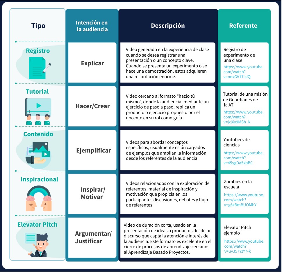 Tipos de video en las experiencias de aprendizaje