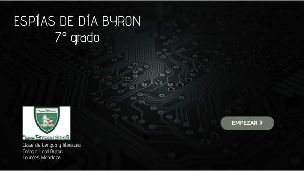 Es el año 2040. Hace 20 años, tras la pandemia por Coronavirus que tuvo en jaque al mundo entero, los países tomaron, entre otras medidas, la decisión de fomentar sistemas de educación a distancia. Las escuelas totalmente online fueron ganando terreno hasta acabar con las clases presenciales. En el año 2025 surge la DIA BYRON- Dirección Internacional de Alfabetización de Byron- que vela por la seguridad en las redes educativas y para que no fallen los servidores que sostienen el aprendizaje a distancia. Hace 8 años, comenzaste a trabajar como espía para esta agencia. A pesar de los riesgos, te encanta tu trabajo, pero siempre estás a la sombra de tu comisario, el señor Gramaticus. Eres muy bueno con los acertijos, pero tu jefe te supera con los conocimientos de Lengua. Llevas meses estudiando Gramática para demostrar que estás a su nivel, mientras esperas tu oportunidad...
