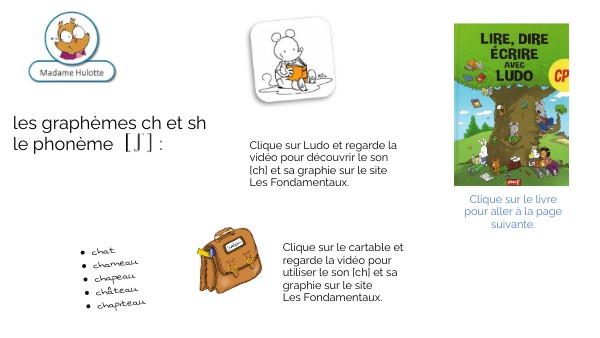 Clique sur Ludo et regarde la vidéo pour découvrir le son [ch] et sa graphie sur le site Les Fondamentaux.