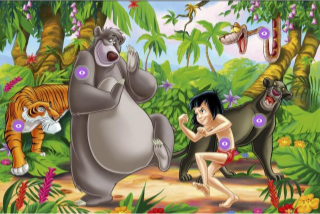En esta imagen lobatos, pueden ver cuales son los encargados de que Mowgli aprenda distintos aspectos necesarios para su crecimiento en la selva de Seeonee, ademas de saber quien es el principal antagonista de esta historia.