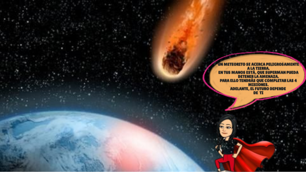 Un meteorito se acerca peligrosamente a la Tierra. En tus manos está, que Superman pueda detener la amenaza. Para ello tendrás que completar las 4 misiones. ADELANTE, el futuro depende DE TI