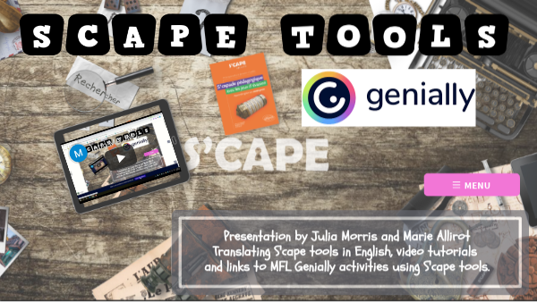 Presentation by Julia Morris and Marie Allirot Translating S'cape tools in English, video tutorials and links to MFL Genially activities using S'cape tools.