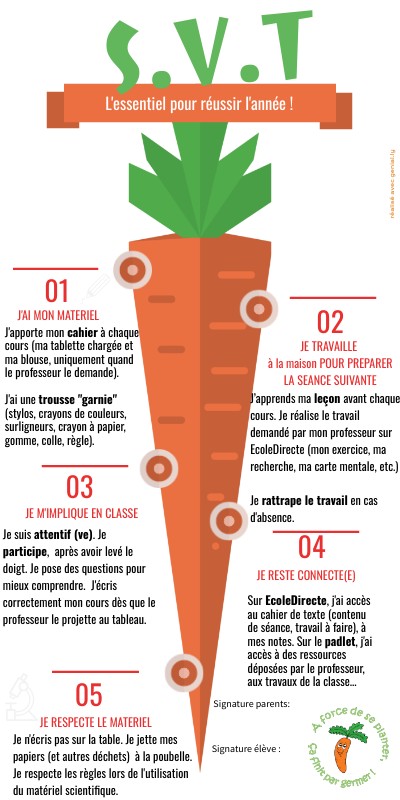 Je n'écris pas sur la table. Je jette mes papiers (et autres déchets) à la poubelle. Je respecte les règles lors de l'utilisation du matériel scientifique.