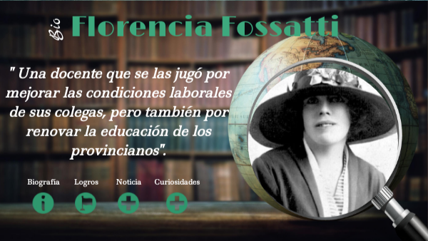 FLORENCIA FOSATI Nació en Mendoza en el año 1888. Fué una maestra, pedagoga y gremialista argentina que encabezó la renovación pedagógica junto con María E. Champeau y Néstor Lemos. Sus aportes buscaban desarrollar una escuela laica, democrática y autogestiva. Cursó los estudios primarios y secundarios en la provincia para recibirse como profesora de pedagogía en la Universidad de La Plata. En 1912 regresa a Mendoza para desempeñar la conducción de diversos cargos. Su vida, asignada por un fuerte compromiso con la tarea docente y las ideas progresistas- transcurrió a lo largo de un convulsionado siglo. Durante 1919, la situación de las docentes mendocinas se encontraba en paupérrimas condiciones, con salarios de miseria y retraso de meses en los pagos. Dos guerras mundiales, revoluciones sociales y la Guerra Fría fueron el escenario político-social de la vida de esta maestra, que murió en 1978 a los 90 años. Florencia, no fue ajena a las luchas sociales de su época. Junto a otros docentes luchó por una educación laica y democrática en función de las necesidades del pueblo.