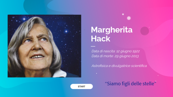 Margherita Hack nacque nel 1922 a Firenze, vicino a Capo di Marte, proprio quando Mussolini e il fascismo presero il potere in Italia iniziando così vent’anni di dittatura. Era figlia unica, una bambina chiusa e introversa, ma anche competitiva. I genitori amavano la natura e gli animali e le diedero un’educazione molto anticonvenzionale, insegnandole l’amore per la libertà e la giustizia e la tolleranza verso qualunque diversità. Erano infatti di due religioni differenti (una cattolica e uno protestante), ma si convertirono entrambi alla teosofia, una filosofia indiana che predica il rispetto per tutti gli esseri viventi, senza però imporre alla loro figlia l’adesione a questa religione. La madre era una maestra che aveva smesso di lavorare, mentre il padre era un contabile che si interessava di astronomia. Non avendo aderito al Partito Fascista, venne licenziato e la famiglia fu costretta a trasferirsi in periferia, in una casa senza riscaldamento. Riuscivano a mantenersi con il denaro che guadagnava la madre, diplomata all’Accademia di Belle Arti, copiando i quadri della Galleria degli Uffizi. Una delle passioni di Margherita, insieme alla bicicletta, era l’atletica, sport nel quale divenne molto brava, vincendo diverse gare. Al termine di una di queste, avendo vinto una medaglia, dovette pronunciare il giuramento fascista, fatto di cui si vergognò sempre. La sua professoressa di scienze fu cacciata dalla scuola perchè ebrea; infatti, tutti coloro che erano ebrei, in seguito alle leggi razziali, venivano privati dei diritti civili e delle attività commerciali. Di conseguenza, la Hack dichiarò, a scuola, di essere contraria al regime fascista e fu sospesa con sette in condotta e rimandata di tutte le materie rischiando di non riuscire a diplomarsi. Per fortuna, quando l’Italia entrò in guerra il 10 giugno 1940, l’esame di maturità venne soppresso e Margherita venne promossa con la media dell’anno. In segno di protesta verso l’alleanza dell’Italia con la Germania, Margherita tolse la bandiera dell’Italia dalla bicicletta. Terminato il liceo classico, la Hack si iscrisse a lettere; ma dopo la prima lezione capì che non era la facoltà giusta per lei e si iscrisse a fisica, senza una apparente vocazione particolare per la scienza.