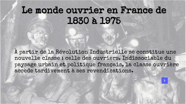 À partir de la Révolution Industrielle se constitue une nouvelle classe : celle des ouvriers. Indissociable du paysage urbain et politique français, la classe ouvrière accède tardivement à ses revendications.