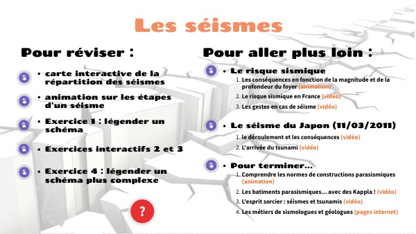 différentes ressources (vidéos, animation...) pour réviser ou approfondir le cours sur les séismes