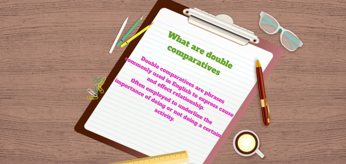 Double comparatives are phrases commonly used in English to express cause and effect relationship. Often employed to underline the importance of doing or not doing a certain activity.