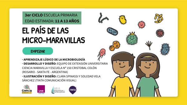 · APRENDIZAJE LÚDICO DE LA MICROBIOLOGÍA · DESARROLLO Y DISEÑO: EQUIPO DE EXTENSIÓN UNIVERSITARIA CIENCIA MARAVILLA Y ESCUELA Nº 150 CRISTOBAL COLÓN (ROSARIO - SANTA FE - ARGENTINA) · ILUSTRACIÓN Y DISEÑO: CLARA SPINASSI Y SOLEDAD VELA SÁNCHEZ (TINTA COMUNICACIÓN VISUAL)