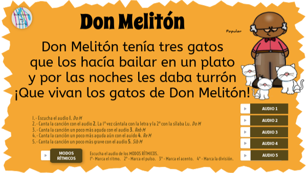 Don Melitón tenía tres gatos que los hacía bailar en un plato y por las noches les daba turrón ¡Que vivan los gatos de Don Melitón!