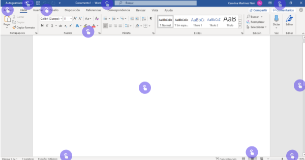 Interactúa y conoce algo más de los elementos que conforman la pantalla de Microsoft Word.